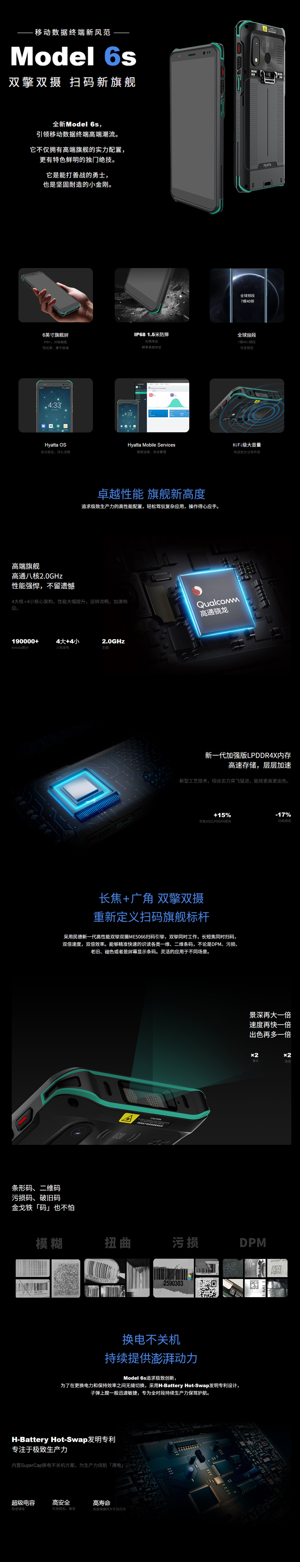 全新Model 6s引领移动数据终端高端潮流。它不仅拥有高端旗舰的实力配置,更有特色鲜明的独们绝技,它是能打善战的勇士,也是坚固耐用的小金刚。高通骁龙八核主频2.0GHz高端芯片, 4+64GB内存配置,安卓11操作系统,追求极致生产力的高性能配置,轻松驾驭复杂应用,操作得心应手。采用3D微曲面设计的6英寸屏。...