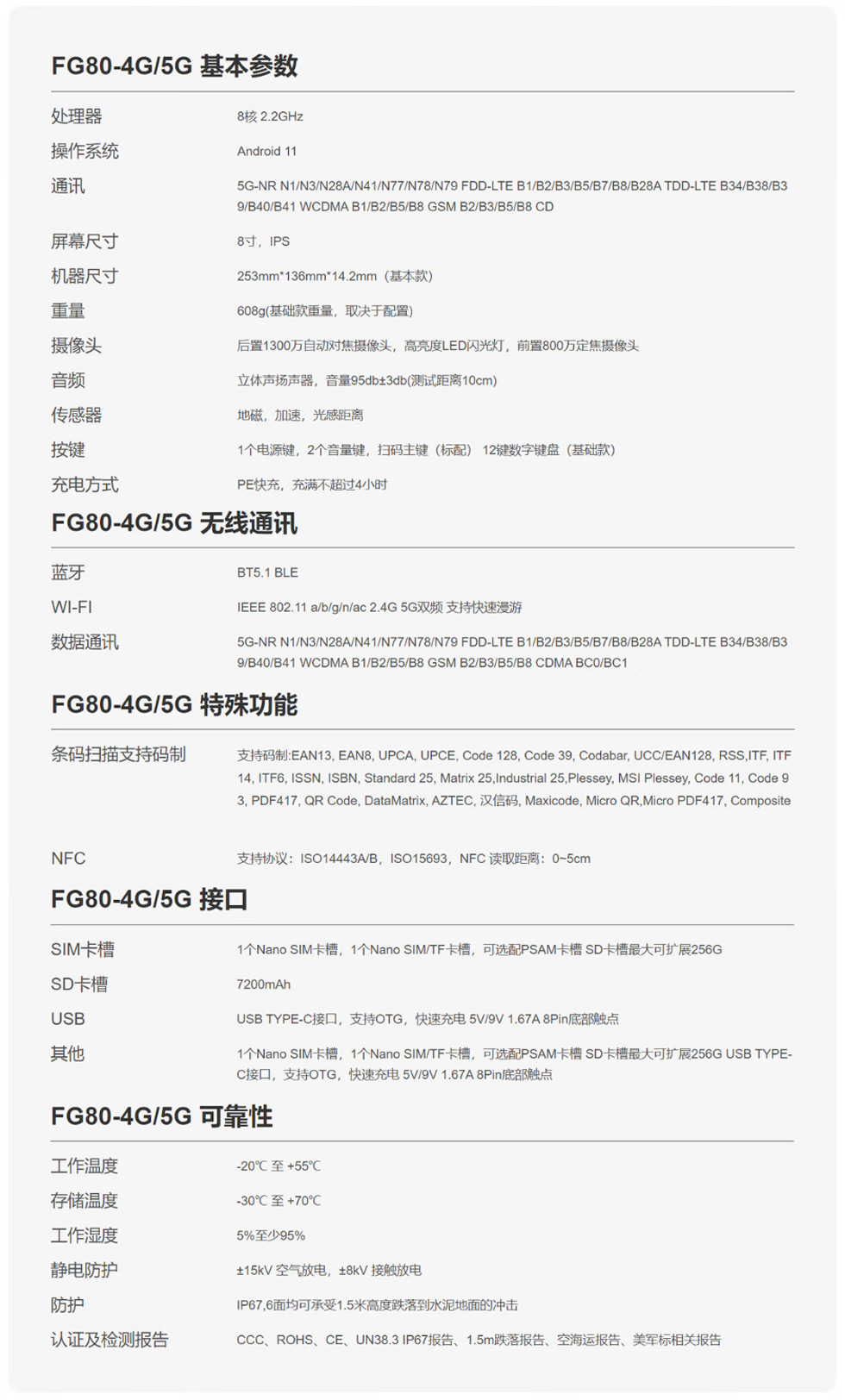 8寸FHD高清屏幕,搭载8核2.2GHz处理器,Android 11操作系统,4GB+64GB储存,7200mAh大容量电池。正面指纹(光学、电容等多种指纹模块可选) 灵活易用。前置800万定焦摄像头,后置1300万自动对焦摄像头,高亮度LED闪光灯。扩展性强,可选UHF模块、二代证模块、数字键盘等多个版本。全新腕带设计,横竖屏切换,旋转灵活。...