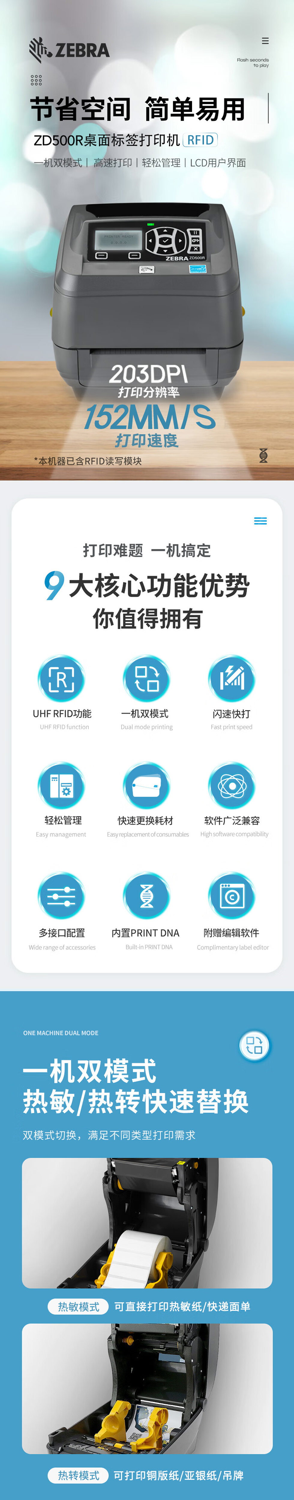 斑马(Zebra)ZD500R_条码打印机,支持热敏和热转印打印,从小型物品级吊牌到大型货箱和货盘标签。通过对间隔较近的RFID嵌进行编码,有助于降低介质成本,减少介质浪费和介质卷更换。...